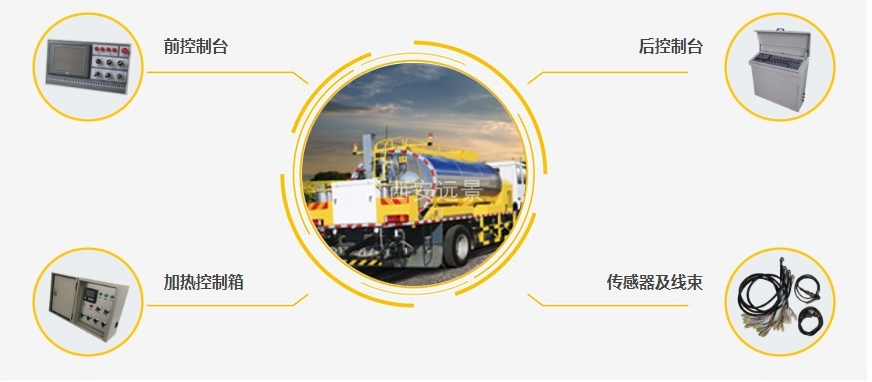 • 电控系统涵盖全车液压系统、导热油系统、气路系统等,对喷嘴、泵速、温度进行闭环控制,确保洒布量恒定,不受车速与路况的影响。