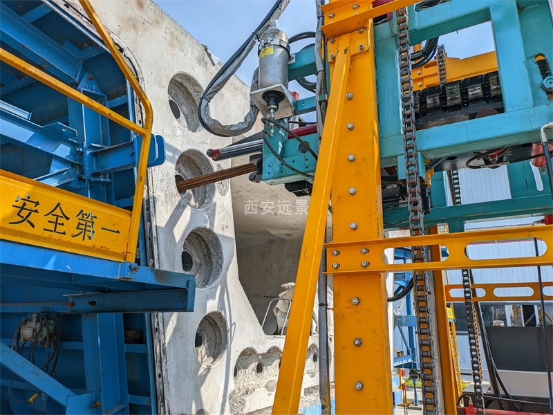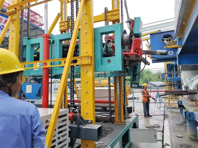 • 输送导向设备,采用液压油缸作为主动力源,将钢绞线用液压油缸间歇式顺利从梁体孔道穿入/拔出到位