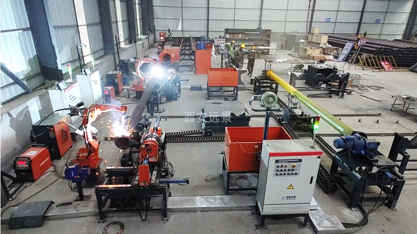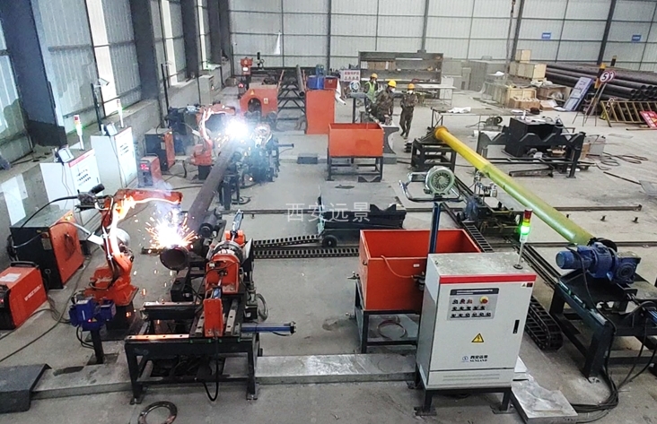 上位机控制,全自动流程;自动定长切割;表面除锈;法兰盘焊接;喷淋冷却;表面喷涂;适应159mm、215mm、319mm钢管。